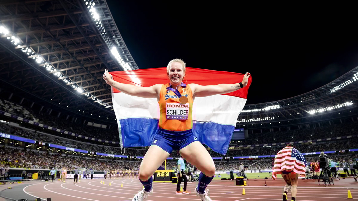 Jessica Schilder heeft geschiedenis geschreven in Tokio door als eerste Nederlandse ooit de wereldtitel te veroveren in het kogelstoten. Met een laatste poging van 20,29 meter veroverde ze de gouden medaille.