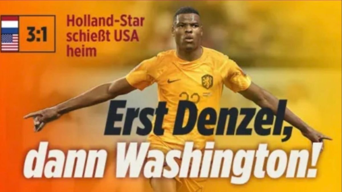 Ook het Duitse Bild richtte zich tot Dumfries: 'Eerst Denzel, dann Washington’, plaatste Bild in de krant. "Dankzij twee perfecte assists stuurde hij het Amerikaanse elftal terug naar de hoofdstad Washington. En met zijn doelpunt werd de hoop van de Verenigde Staten vernietigd. Niet de Amerikaanse acteur Denzel Washington is de ‘horror’, maar Dumfries.”