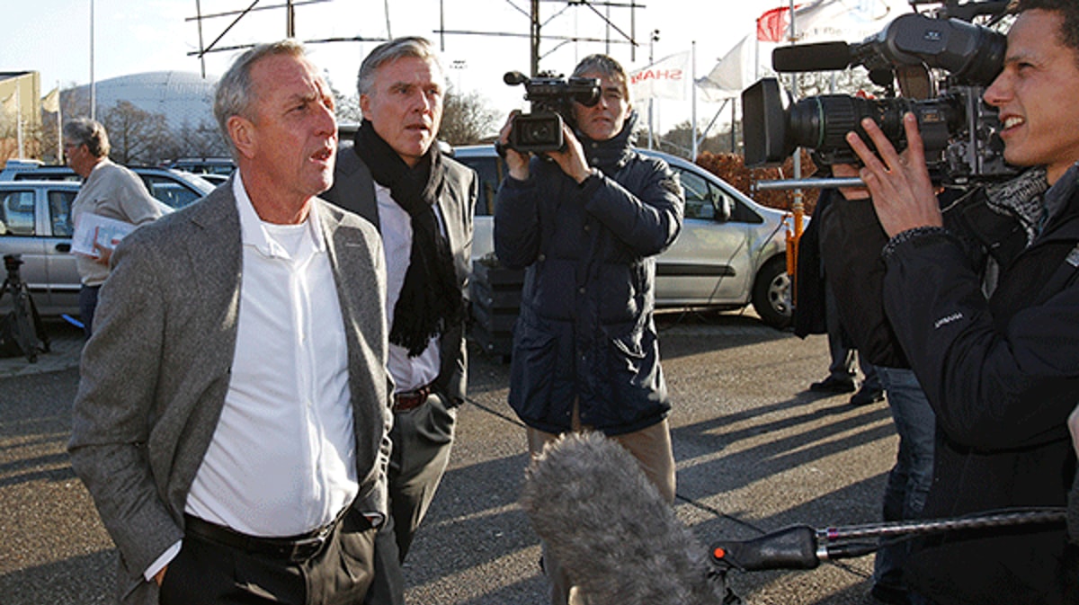 Vandaag in het AD 'het grote WK-interview' met Johan Cruijff. Nou dat 'grote' valt wel mee, maar hij zegt wel wat zinnige zaken over het Nederlands elftal en de bondscoach.Johan Cruijff schat de kansen voor Oranje in: "Oranje heeft best kwaliteit. Maar de meeste spelers zijn nog te jong. En dan die loting: Spanje, Chili... Dra-ma-tisch." Waar we dan staan als Nederland elftal? "Je moet het zien zoals het is. Als we de eerste ronde doorkomen, dan is dat een knappe prestatie. Het brengt ons terug bij de realiteit, daar waar ons voetbal tegenwoordig staat."Ook lijkt hij weinig vertrouwen te hebben in de huidige bondscoach: "We hebben weinig met elkaar gemeen. Ik ben de straatvoetbalcoach, van het totaalvoetbal. Ik ben geen theoretische trainer." Over de afwezigheid van Kevin Strootman is Cruijff duidelijk: "Dan moet je dus een ándere Strootman zoeken."Het volledige interview met Johan Cruijff staat dus vandaag in het AD.