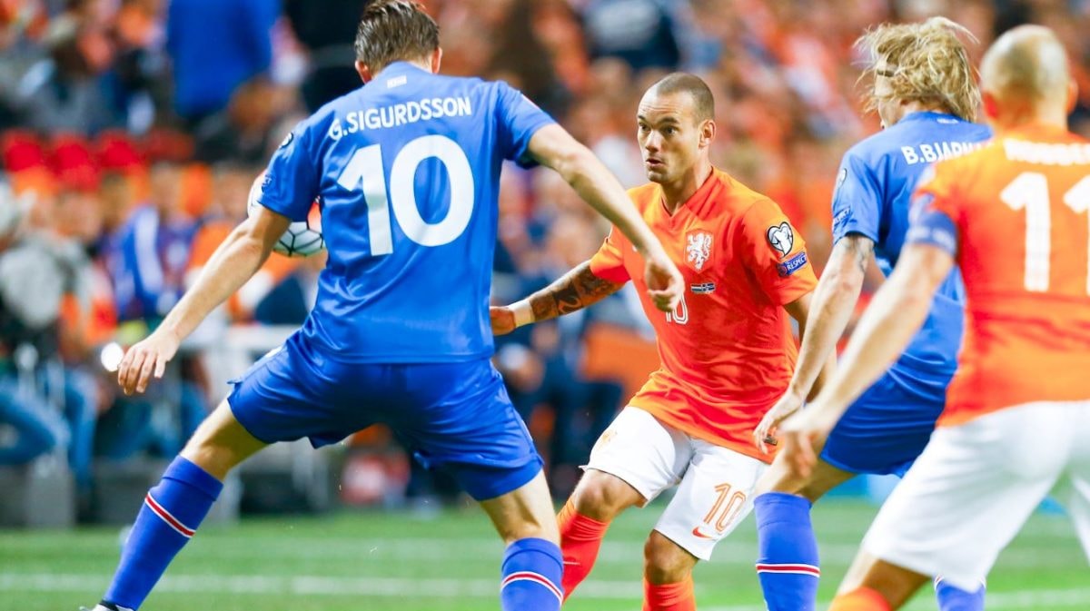 Oranje moet morgenavond winnen van Tsjechië en daarnaast volledig hopen op de winst van IJsland tegen Turkije. Gylfi Sigurdsson, de 'beul van het Nederlands elftal' tijdens deze kwalificatie, wil Oranje morgen graag een handje helpen door van Turkije te winnen. "We willen de groep winnen en onze ranking verbeteren", aldus de 26-jarige IJslander.Sigurdsson is in dienst van Swansea City, de club waar de Nederlander John van Zweden aan het roer staat. De behangkoning heeft vertrouwen in de speler van zijn club. "Gylfi is net een monster. Hij zei onlangs tegen mij: maak je niet druk, we gaan ons stinkende best doen te winnen in Turkije. Hij schiet die Turken omver."Sigurdsson scoorde in de twee duels met Oranje deze kwalificatie alle drie de doelpunten voor de IJslanders en was daarmee de 'beul van Oranje'. "Hij heeft Nederland een nekschot gegeven", zegt Van Zweden. "Na die laatste wedstrijd stond ik even met hem te praten. Hij beloofde me er alles aan te doen om van Turkije te winnen. IJsland wil graag eerste worden in de groep, die gaan er vol voor. Ik heb wel vertrouwen in dat gekke team."Over zijn eigen speler is hij duidelijk: "Gylfi is een geweldige voetballer en bovendien een ongelooflijk sympathieke en relaxte gozer. Hij gaat Nederland helpen, let maar op. Voor de zekerheid zal ik hem nog een berichtje sturen. Maar ik maak me vooral zorgen of Oranje wel van Tsjechië wint", besluit de altijd uitgesproken Van Zweden.