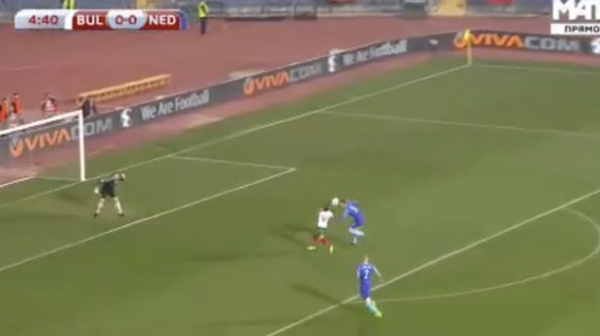 Bulgarije - Nederland kent een dramatisch begin voor debutant Matthijs de Ligt. De jonge verdediger blundert in duel met de Bulgaarse aanvaller Spas Delev. 1-0 voor Bulgarije.http://www.dailymotion.com/video/x5g7chg_spas-delev-goal-hd-bulgaria-1-0-netherlands-25-03-2017_sport