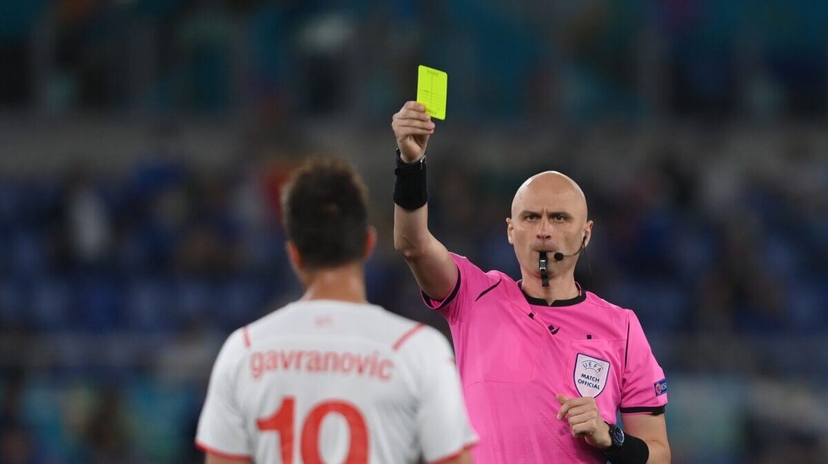 Het lijkt dus een scheidsrechter die vrij veel kaarten geeft. Oppassen dus met name voor Marten de Roon, die op scherp staat en bij een gele kaart aanstaande zondag tegen Tsjechië een mogelijke kwartfinale tegen Wales of Denemarken mist.