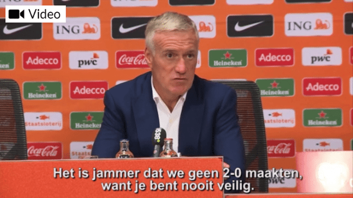 Didier Deschamps was het gisterenavond niet eens met de reacties uit het Nederlandse kamp. Onder andere bondscoach Danny Blind gaf aan dat Oranje minimaal één punt had verdiend tegen de bezoekers. De manager van Frankrijk dacht daar echter geheel anders over.De volgende wedstrijd van Oranje staat gepland op 9 november. Alle informatie over dat duel vind je hier!