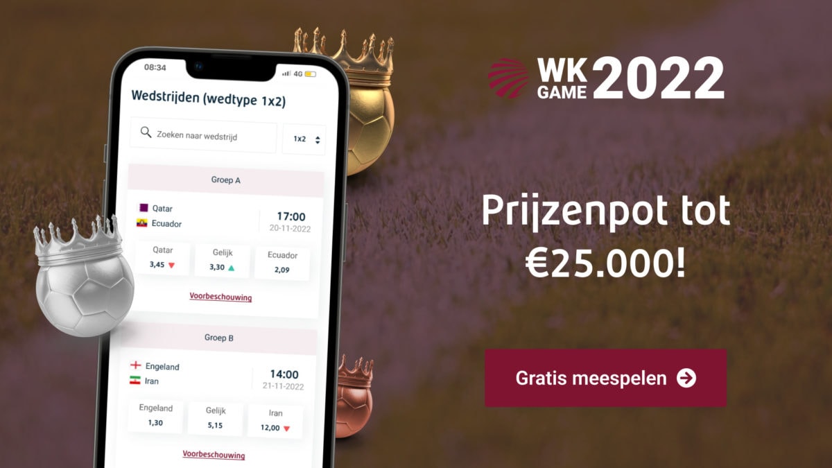 Game 2022 kun je met fictief geld een aantal voetbalweddenschappen afsluiten, zo heb je