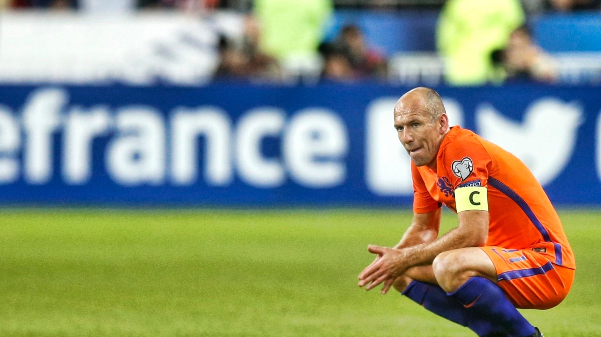 Arjen Robben wilde vooral positief blijven na de kansloze nederlaag tegen Frankrijk (4-0). De aanvaller was zichtbaar blij met de verrassende 3-2 overwinning van Bulgarije op Zweden."Drie wedstrijden winnen en dan ben je er denk ik", stelde de rechtsbuiten tegenover NOS-interviewer Bert Maalderink. "Dan kun je alsnog de play-offs in. Dat moet nu heel hard gaan leven. Frankrijk, gefeliciteerd en wij gaan op naar Bulgarije."Bij de keiharde declassering door Frankrijk wilde onze sterspeler niet lang stilstaan. "We hebben verloren van een ploeg die veel beter is. Mochten we het niet halen, dan verliezen we het natuurlijk niet op zo'n avond. Deze ploeg was te veel van het goede voor ons."
