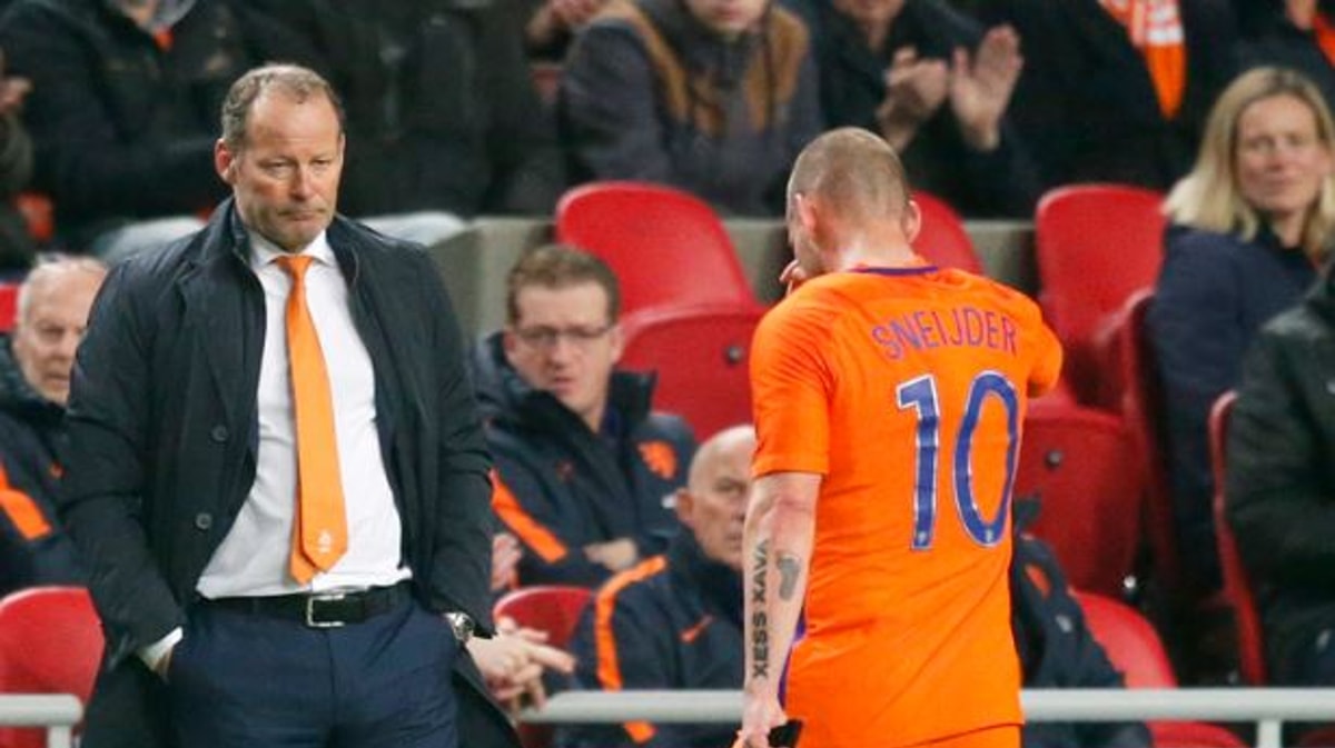 Sterkhouder Wesley Sneijder moet het duel tegen Frankrijk zo goed als zeker aan zich voorbij laten gaan. Dat zei Danny Blind na afloop van de klinkende 4-1 zege op Wit-Rusland.Sneijder bleef in de rust in de kleedkamer achter, nadat hij eerder deze week al herstellende was van een blessure. De middenvelder werd op tijd klaargestoomd voor de wedstrijd van vanavond, maar die bleek dus te vroeg te komen.Blind denkt na over het oproepen van een vervanger, al stelt hij wel dat hij het verlies van de Oranje-aanvoerder zou kunnen opvangen binnen zijn huidige selectie. "Met Davy Klaassen, met Siem de Jong. Maar ik kan ook iemand oproepen waarvan ik denk dat hij verdient", laat Blind aan de NOS weten.