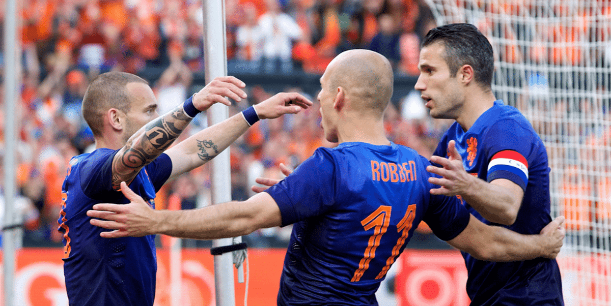 De drie spelers die samen de Gouden Driekhoek van het Nederlands elftal vormen zijn allen op jacht naar een bijzonder Oranje-record. Arjen Robben, Wesley Sneijder en ook Robin van Persie kunnen zaterdagavond in de kwartfinale tegen Costa Rica opnieuw een gooi gaan doen naar een stokoud WK-record van Johnny Rep. Rep, oud-speler van Oranje, is nog altijd topscorer van Nederland op Wereldkampioenschappen met zeven goals. Hij wordt echter op de voet gevolgd door Arjen Robben en Wesley Sneijder die beiden op zes doelpunten staan. Robin van Persie staat mede door zijn drie goals van dit WK op vijf doelpunten.De 42-voudig international Rep, oud-aanvaller van Ajax, kwam op de WK's van 1974 en 1978 in veertien optredens tot zeven doelpunten en is daarmee al 36 jaar topscorer van het Nederlands elftal in WK-wedstrijden. Ook speelde Rep de meeste wedstrijden tot voor dit WK, maar daarbij haalde Sneijder hem in met 15 duels. Vanavond speelt Sneijder tegen Costa Rica al zijn 16e wedstrijd en als Oranje wint volgen vermoedelijk ook nog wedstrijd 17 en 18.Sneijder kwam door zijn verlossende goal tegen Mexico nu ook tot op één treffer van Rep. Robben maakte, net als Sneijder, zijn zes treffers op drie verschillende WK's: één op het toernooi in Duitsland van 2006, twee op de eindronde van 2010 in Zuid-Afrika en nu al drie tijdens dit WK. Van Persie staat dus op vijf en heeft nog twee goals nodig om naast Rep te komen.Rep hoopt dat hij zijn record kwijtraakt aan Robben. "Arjen Robben is in een bloedvorm. Alle ogen zijn op hem gericht. Hij is een van de betere spelers van het toernooi. Hij heeft het naar zijn zin en is hartstikke in vorm. Ik hoop voor Arjen dat hij mij uit de boeken schiet. Ik vind het allemaal niet zo belangrijk. Als Arjen scoort, komt Oranje ver. Ik hoop dus dat hij er nog vier in knalt. Dan komen we misschien wel in de finale."