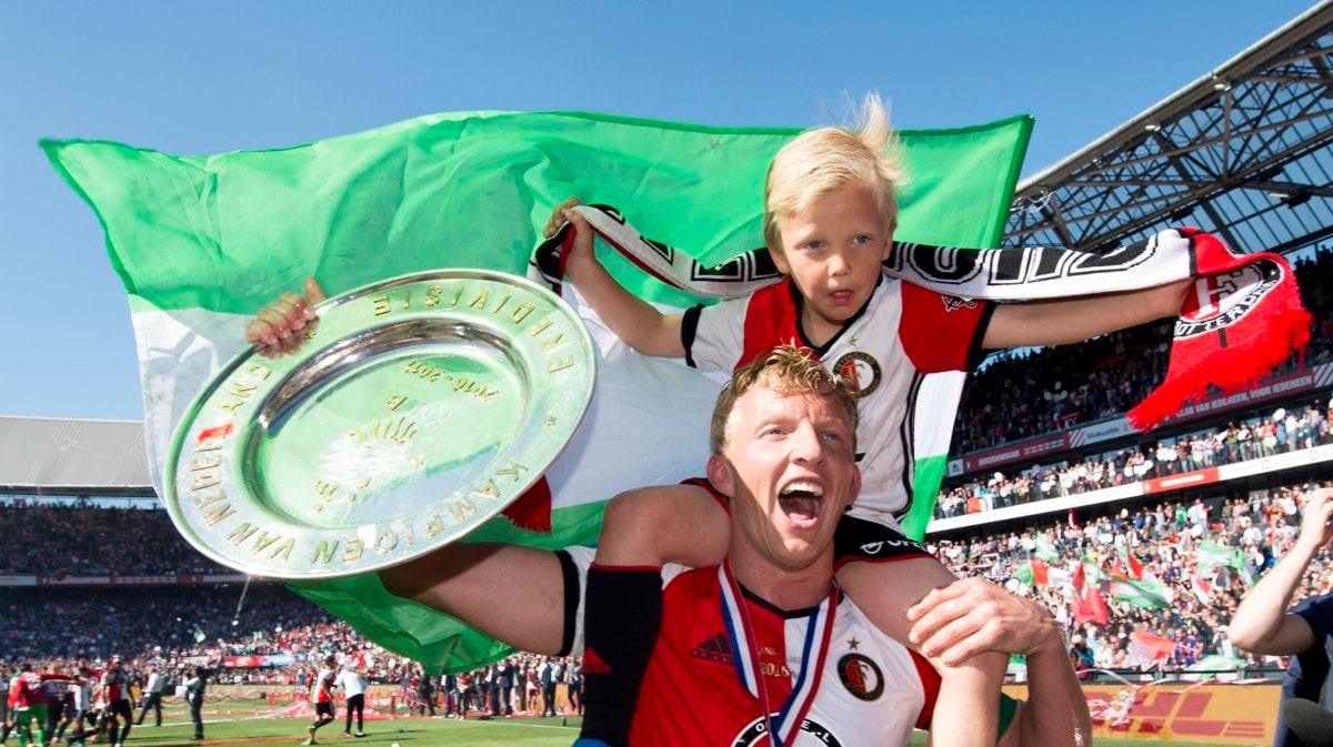 Is hij al 2,5 jaar geen international meer? Dat weten wij ook wel, maar dat maakt toch niks uit deze week! In onze ogen is niemand anders dan Dirk Kuyt uit Katwijk de terechte international van de week.De 104-voudig international stopte in oktober 2014, na het WK waarop Oranje als 3e eindigde, als international van Oranje. De absolute voorbeeldprof, die altijd keihard heeft gewerkt en een voorbeeld is voor vele jeugdspelers. Hij speelde een WK-finale in 2010 en werd derde op het WK 2014 en nam dus na meer dan 100 interlands afscheid.En dan gisteren, de dag dat Feyenoord voor het eerst in 18 jaar kampioen van Nederland kon en moest worden. Dirk Kuyt mocht in de basis starten, mede omdat Tonny Vilhena geschorst was, en beschaamde dat vertrouwen van coach Van Bronckhorst geen moment. Wat heet, Kuyt maakte binnen de twee minuten al de 1-0 en niet veel later de bevrijdende 2-0. Het feest werd compleet toen Kuyt in de tweede helft zijn hattrick compleet maakte met een penalty. De titel in Rotterdam is daarmee een feit, en dat was precies waarvoor hij twee jaar geleden terug naar Feyenoord kwam.De kans dat hij gaat stoppen als voetballer lijkt groot, al wilde hij er gisteren nog niet teveel over zeggen tegen de Telegraaf: "Ik heb een duidelijk beeld van mijn toekomst. Daarvoor was deze wedstrijd niet meer bepalend. Ik vind het respectvol om het eerst met de trainer en de club te bespreken. Dit was vandaag niet meer van invloed. Ik weet hoe ik er in sta…"Nu geniet Kuyt vooral van het moment. Het kampioenschap is het mooiste moment dat hij heeft meegemaakt: "Voor mij is dit het summum. Hier kan geen enkel moment tegenop. Geen WK-finale, geen Champions League-finale. Ik heb bij fantastische clubs mogen spelen, maar dit hier is het mooiste van alles. Dit is de grootste club van Nederland. Wat ik hier met dit team heb gepresteerd, is bovenmaximaal."