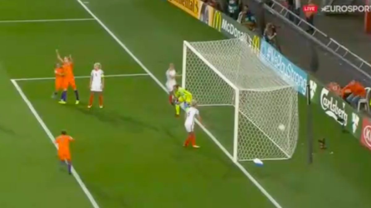 Vivianne Miedema heeft de OranjeLeeuwinnen in de 22e minuut op voorsprong gebracht tegen Engeland.Jackie Groenen houdt het veld breed en zet vervolgens mooi voor. Die bal is precies op maat voor Miedema, die binnen kopt: 1-0.http://www.dailymotion.com/video/x5vrj4c