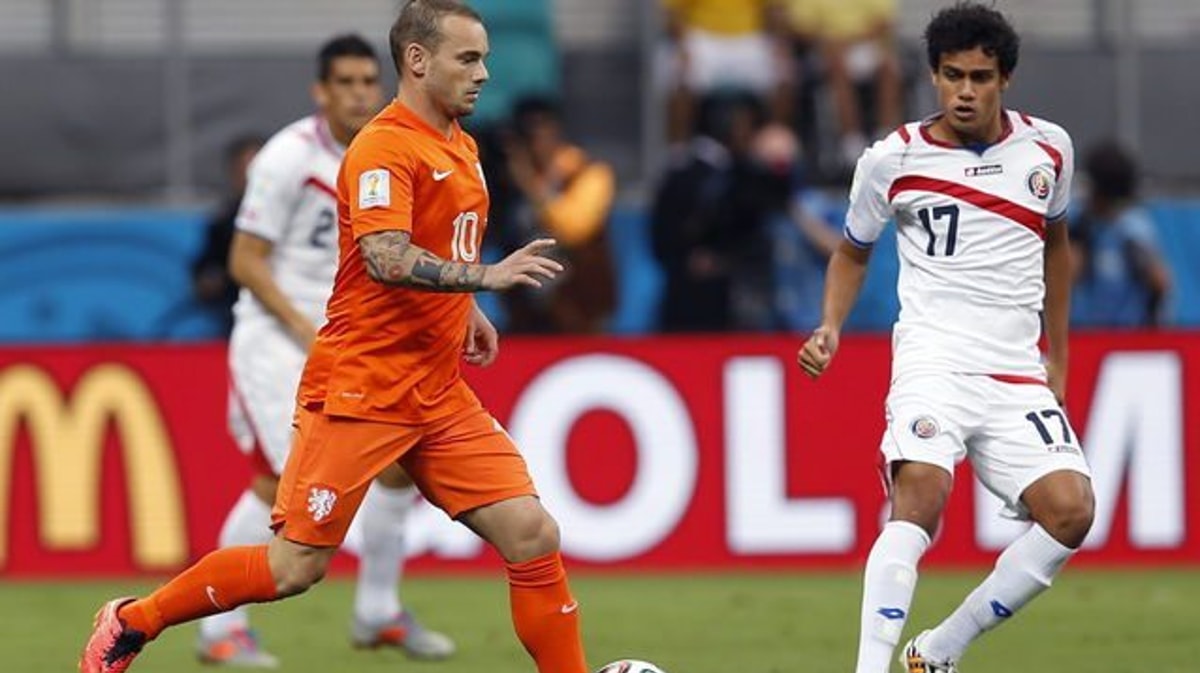In Salvador begon vanavond om 22.00 uur Nederlandse tijd Nederland - Costa Rica op het programma in de kwartfinalewedstrijd op het WK in Brazilië.Nederland begon tegen Costa Rica met Depay als linksvoor. Dirk Kuyt was naar de rechterflank verhuisd. Verder stonden dezelfde namen in het veld als tegen Mexico, behalve natuurlijk Nigel de Jong, die geblesseerd raakte tegen de Mexicanen.Oranje probeerde in tegenstelling tot de vorige wedstrijden meer op de aanval te spelen. Toch was het aftasten in de eerste fase van de wedstrijd.Na 20 minuten was daar de eerste grote kans voor Oranje, Kuyt gaf goed voor en Robin van Persie werd bereikt. Zijn schot miste echter de kracht en precisie voor een doelpunt.Costa Rica wist op een vrije trap na amper gevaar te stichten, maar ook Nederland werd maar zelden gevaarlijk. Doordat Costa Rica zich compleet ingraaft is het lastig voor Nederland om erdoor te komen.Nederland - Costa Rica stond daarom nog 0-0 bij rust.Ook in de tweede helft kwam Oranje maar zelden door de muur van witte hemden heen. Costa Rica leek alles te doen voor een verlening of penaltys en Oranje bleef het maar proberen. Wesley Sneijder was nog het dichtst bij een doelpunt. Hij schoot een vrije trap buiten bereik van de keeper snoeihard op de paal.(zie de vrije trap hier). Ook Robin van Persie schoot via een speler van Costa Rica nog op de lat.Ook na de volledige speeltijd staat er echter nog altijd 0-0 op het scorebord. Nederland - Costa Rica moest daarom nog verder in de verlenging.Er kwam echter een verlening bij Nederland - Costa Rica, waarin Oranje opnieuw op jacht ging naar een treffer. Halverwege de verlening was het nog altijd 0-0 in Salvador. In de tweede helft van de verlenging bracht Van Gaal Klaas-Jan Huntelaar, die Mexico eigenhandig uit wist te schakelen.m Ook met Huntelaar lukte het Oranje niet om te scoren waardoor penalty's beslissing moesten brengen.Bondscoach Van Gaal bracht keeper Tim Krul voor Jasper Cillessen en Krul wist zich te ontpoppen tot de grote held van Oranje door twee penalty's van Costa Rica te stoppen.