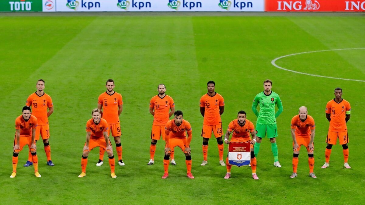 In de goal staat net als woensdag Tim Krul, die de geblesseerde Cillessen vervangt. Voor hem staan van rechts naar links Denzel Dumfries, Matthijs de Ligt, Daley Blind en Owen Wijndal.