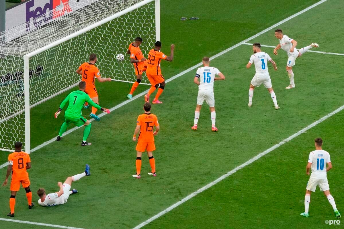 Het Nederlands elftal is in het duel met Tsjechië op een 1-0 achterstand gekomen. Na de rode kaart voor De Ligt speelde Oranje al met 10 man, en een klein kwartier later wisten de Tsjechen een gaatje te vinden in de Nederlandse defensie.