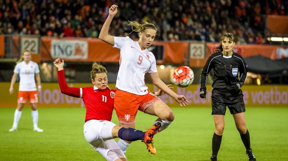In het tweede duel van het Olympisch kwalificatietoernooi gingen de Oranje Leeuwinnen met maar liefst 4-1 onderuit tegen Noorwegen. Met een vol stadion achter zich lukte het maar niet voor de dames.Ten opzichte van de wedstrijd tegen Zwitserland voerde bondscoach Van der Laan twee wijzigingen door: Desiree van Lunteren verving Kika van Es als rechtsback, terwijl Sherida Spitse in de warming up geblesseerd uitviel. Zij werd vervangen door Kelly Zeeman.In de eerste helft waren de Noorse dames de baas op Het Kasteel. Een uitblinkende Ada Hegerberg bezorgde de bal bij Haavi, die de trekker overhaalde. Met 1-0 op het scorebord gingen de vrouwen de rust in. Na de rust ging het spel voornamelijk op en neer.De Oranje-vrouwen hadden vooral moeite met elkaar bereiken en daar maakte Noorwegen gebruik van. Een opvallend moment was de 2-0 van Noorwegen. Kelly Zeeman werd geraakt in het gezicht, de scheidsrechter floot niet en de Noorse speelsters profiteerden. Uiteindelijk scoorde Mjelde.Na de 2-0 werd Nederland sterker en scoorde Manon Melis de aansluitingstreffer: 2-1. Daarna raakte Vivianne Miedema ook nog de paal. Tien minuten voor tijd gaven de Oranje Leeuwinnen het duel volledig uit handen. De Noorse spits Hegerberg scoorde twee goals en bepaalde de eindstand op 4-1.Momenteel staat Nederland derde in de poule, met drie punten en een doelsaldo van -2. Koploper is Zweden, met zes punten. Het laatste duel van de Oranje vrouwen is volgende week woensdag, tegen de Zweedse dames. Dit duel is van cruciaal belang, wil Oranje nog een kans maken om zich te kwalificeren voor de Olympische Spelen.
