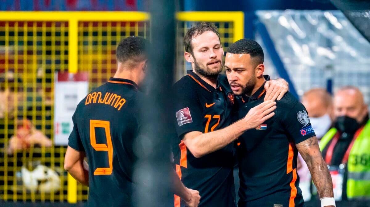 Met een prachtig balletje achter zijn standbeen heeft Memphis Depay op een 2-0 voorsprong gezet. De spits van Oranje maakte op aangeven van Denzel Dumfries op fraaie wijze de 2-0.