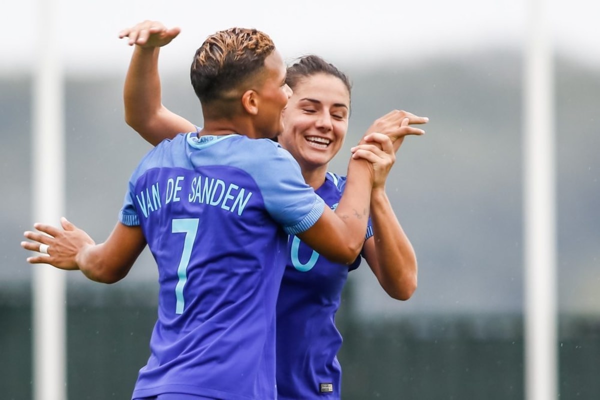 De OranjeLeeuwinnen hebben hun eerste duel na het gewonnen EK gewonnen. België werd in een vriendschappelijke wedstrijd met 2-1 verslagen.Na drie minuten kwam Nederland op voorsprong via Anouk Dekker. De verdedigster kopte binnen uit een corner. In de 21e minuut verdubbelde Shanice van de Sanden de marge.Zo'n tien minuten na de thee kwam België terug via een treffer van Tine De Caigny: 1-2. Dat was tevens de eindstand.Het duel fungeerde voor de OranjeLeeuwinnen als oefenduel in aanloop naar het WK-kwalificatieduel met Noorwegen op 24 oktober.