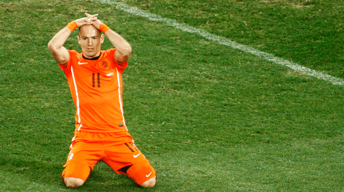 Voor Arjen Robben is Spanje - Nederland vanavond een bijzonder duel. De buitenspeler en spits van Oranje heeft echter geen last van de druk die op zijn schouders ligt na de gemiste kans in de finale van 4 jaar geleden.Op de vraag wat er gebeurt als hij vanavond weer zo'n kans krijgt is hij duidelijk: "Dan gaat ie erin natuurlijk." Of hij de keeper voorbij dribbelt of weer schiet laat Robben in het midden. "Dat ligt aan de situatie. Maar: de bal gaat erin. Die overtuiging heb ik."Robben denkt eigenlijk niet meer terug aan die beruchte kans: "Nee. Ik ben inmiddels wel zover dat ik kan accepteren dat je het verleden niet meer kunt veranderen. Ik denk niet in termen van "wraak nemen" op Spanje voor die verloren finale en ik voel niet de druk van het niet mogen missen van een kans."Arjen Robben denkt wel dat Spanje angst heeft voor Nederland: "Ja, zeker weten. Ik weet dat ze er niet gerust op zijn. Ik spreek aardig wat jongens uit het Spaanse team, bij Bayern München bijvoorbeeld spelen Javi Martinez en Thiago, die het WK nu mist door een blessure. En laatst toen we met Bayern tegen Real Madrid in de Champions League speelden, kwam het WK ook al even ter sprake. Die Spaanse jongens spelen niet graag tegen Nederland. Het zit in onze cultuur dat we diep nadenken over voetbal, tactisch verzinnen wij altijd wel iets wat aardig uitpakt. Ook in de WK-finale hadden we iets bedacht, een bepaalde manier van drukzetten, waar Spanje in het begin van schrok." "Ik zie het niet als een last. Ik zie het alleen maar als positief dat mensen vinden dat je goed bezig bent en iets extra's verwachten. Maar, en dat zeg ik niet om de druk van me af te schuiven, het gaat altijd nog in de eerste plaats om het team. Ik bedoel: om als aanvaller iets te kunnen forceren, zul je eerst in stelling moeten worden gebracht. Ons spel in balbezit, de opbouw en de snelle omschakeling van achteruit, dat kan en moet nog beter. Dat weten we en daar werken we aan."