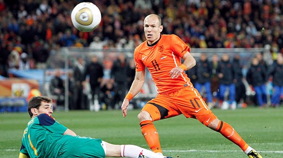 Arjen Robben zegt in gesprek met de FIFA dat hij Oranje niet als kanshebber ziet voor de WK-titel. "Voor mij zijn Brazilië, Duitsland en Spanje de favorieten en er zijn nog een paar gevaarlijke teams", aldus de Bayern-aanvaller."Ik denk niet dat wij een favoriet zijn, maar ik blijf positief", gaat hij verder. "In Nederland wil iedereen natuurlijk horen dat we wereldkampioen worden, maar we moeten realistisch blijven. Sommige teams zijn op het moment beter, daar hoeven we ons niet voor te schamen."Robben ziet dat echter als iets positiefs. "We kunnen ons de komende maanden naar het WK rustig ontwikkelen, kleine stappen maken en dan zien we wel wat eruit komt. Er moet echter nog veel gebeuren wil Nederland de finale halen."Momenteel herstelt de sterspeler van een blessure. Het is te hopen dat hij weer helemaal fit is op het WK.