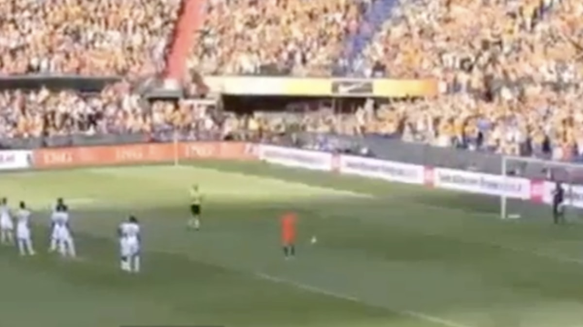 Arjen Robben heeft het Nederlands elftal zojuist op een 2-0 voorsprong gezet. Dat gebeurde vanaf 11 meter, nadat Vincent Janssen door de doelman was neergehaald.