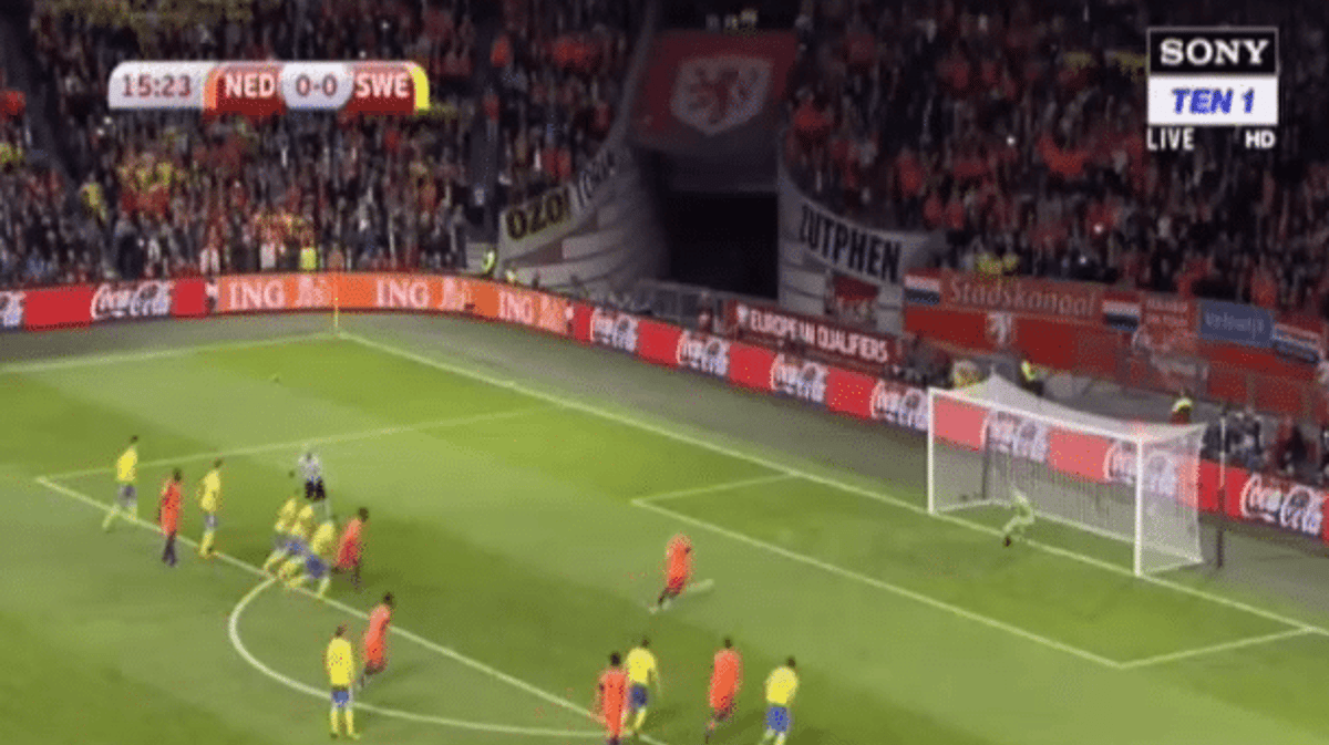 Arjen Robben heeft Oranje zojuist op een 1-0 voorsprong geschoten. Een handsbal zorgde ervoor dat het Nederlands elftal een penalty kreeg en deze werd met het nodige geluk binnengeschoten door de aanvoerder van Oranje.Daarmee moet Oranje nog zes goals maken om zich te plaatsen voor de play-offs:http://www.dailymotion.com/video/x64250n