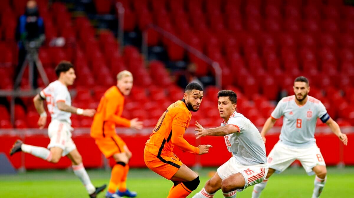 Het Nederlands elftal heeft vanavond in de Johan Cruijff ArenA in Amsterdam met 1-1 gelijkgespeeld tegen Spanje. Het oefenduel werd, uiteraard, gespeeld zonder publiek. Oranje kreeg goede kansen, maar mocht uiteindelijk tevreden zijn met het gelijke spel.