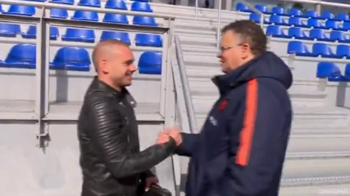 Een bekend gezicht bij de training van het Nederlands elftal vandaag. Wesley Sneijder kwam langs tijdens de training van de selectie in de bossen van het complex in Zeist.Wat Sneijder precies komt doen is niet duidelijk. De middenvelder nam vorige maand afscheid en is geen international meer. Hij kreeg echter niet zijn gewenste afscheid tijdens de interland met Engeland aankomende vrijdag.Wellicht is Sneijder in Zeist om met de KNVB te spreken over een geschikt moment voor een afscheidsduel van de recordinternational.https://twitter.com/OnsOranje/status/976425843332296704