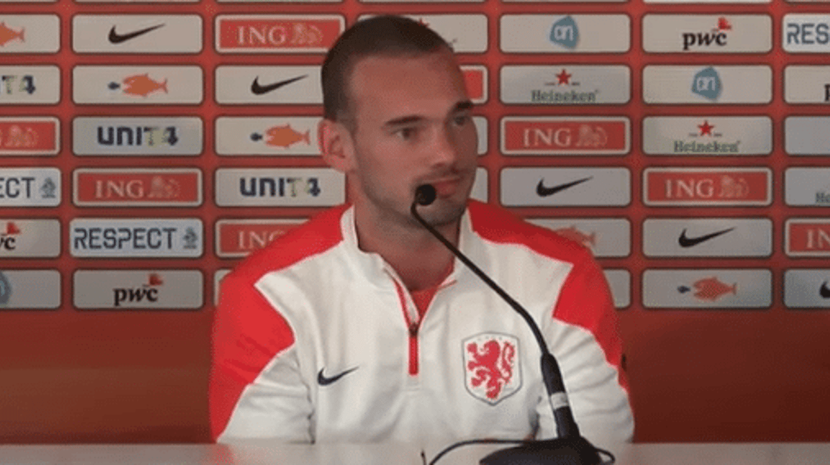 Wesley Sneijder is weer in vorm, hij voelt zich lekker bij Oranje en wil schitteren, net als op de toernooien van 2008, 2010 en 2012. Op het EK in Polen en Oekraïne, waar hij ongeveer als enige zijn normale niveau haalde. Hoe komt het toch dat Sneijder altijd weet te pieken op de juiste momenten? "Daar heb ik eigenlijk niet zo over nagedacht", zegt Sneijder tegen de Telegraaf.Sneijder zoekt naar een antwoord: "Ik denk dat ik onder alle omstandigheden rustig blijf", zegt Sneijder. "Waar andere spelers in een kolkend stadion of onder immense druk verkrampen, heb ik daar geen last van. Ik geniet altijd tijdens trainingen en wedstrijden, maar de eindtoernooien geven me een onbeschrijflijk lekker gevoel." Volgens Sneijder zijn de toernooien het allermooiste podium. "De adrenaline stoot die je daar krijgt, moet je omzetten in een topprestatie. Met de staf en alle spelers aan een missie beginnen en als hecht team naar de wedstrijden toeleven is immers het mooiste dat er is. De juiste focus kan ons ver brengen. Dat hebben we in 2010 wel gezien. En 2012 was natuurlijk het tegenovergestelde." Sneijder weet dat zijn ervaring op het hoogste niveau hem ook altijd helpt. "Als spelbepaler wil je altijd dwingend zijn, maar het is juist de kunst om ook in mindere wedstrijden een belangrijk aandeel te hebben. Je ervaring kan je daarbij helpen."