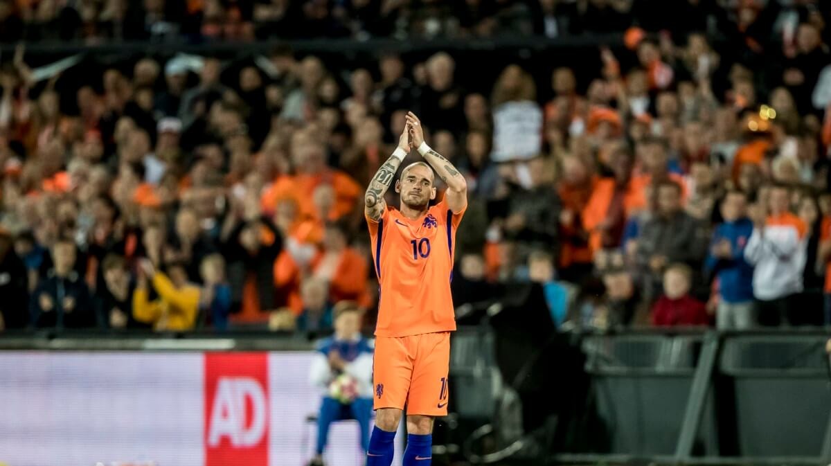 Wesley Sneijder zal op 6 september, als Oranje het oefenduel tegen Peru speelt, een officieel afscheid krijgen in het Nederlands elftal. Het zal de 134e en laatste interland worden voor de record-international.Dat heeft zojuist OnsOranje, de supportersvereniging van de KNVB, bekendgemaakt via Twitter. Sneijder nam de vorige maand afscheid van Oranje na een goed gesprek met de nieuwe bondscoach Ronald Koeman. Na zijn stap naar Qatar afgelopen winter leek zijn interlandcarrière al zo goed als klaar.Een afscheid moest daarna besproken worden tussen de voetbalbond. Nu is bekend geworden dat het duel op 6 september de juiste datum lijkt voor een mooi en verdiend afscheid.https://twitter.com/OnsOranje/status/988377006646677505