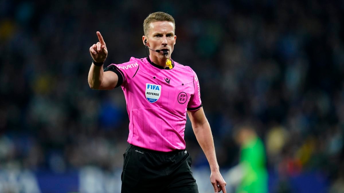 De Spaanse arbiter wordt in het veld geassisteerd door zijn vaste collega's José Naranjo en Diego Sanchez Rojo. De vierde official is Pablo González Fuertes en de VAR van dienst is Ricardo de Burgos met als assistent Santiago Jaime Latre. Ook zij zijn allemaal Spaans.
