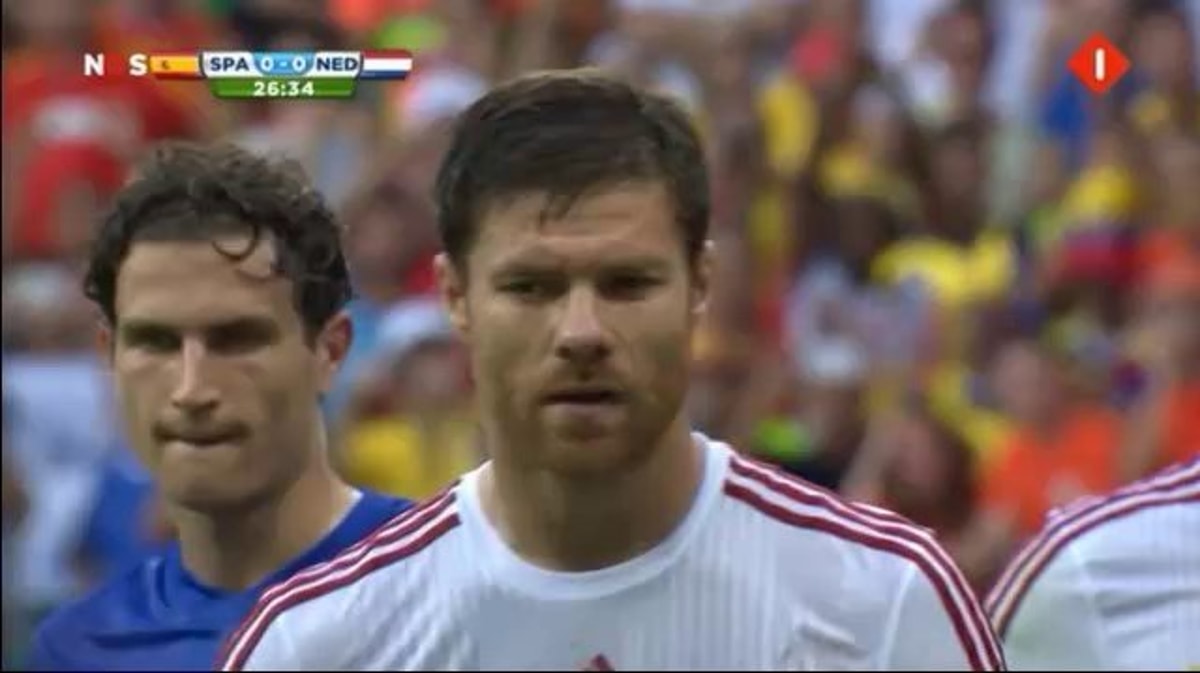 Vanavond was het dan eindelijk zover, Spanje - Nederland op het WK 2014. De herhaling van de WK-finale van 2010 in Salvador, wordt gespeeld in een benauwd Salvador.Al binnen tien minuten had Wesley Sneijder een grote kans om Nederland op 1-0 te zetten. Casillas lag echter in de weg nadat Sneijder werd weggestuurd door Arjen Robben. Niet veel later was het Diego Costa die de kans kreeg voor Spanje, maar Ron Vlaar lag keurig in de weg en werkte de bal weg uit het zestienmetergebied van Nederland.In de 27e minuut kreeg Spanje een penalty, De Vrij haalde Diego Costa onderuit en de scheidsrechter weer resoluut naar de stip. Xabi Alonso wist vervolgens oog in oog met Cillessen de 1-0 voor Spanje te maken. Of het een penalty was valt te betwijfelen, zoals in onderstaande beelden te zien in:Xabi Alonse zette Spanje in elk geval op voorsprong met de penalty:Nederland probeerde daarna aan te zetten, maar had het lastig tegen de compact spelende Spanjaarden. Spanje speelde de bal daarna rustig rond en Oranje wist maar nauwelijks voor gevaar te stichten.Tot de 44e minuut, een prachtige pass van Blind wordt door Robin van Persie gepromoveerd tot een doelpunt met een schitterende kopgoal. Zie de wereldgoal boven het bericht.Spanje en Nederland gingen daarna met een 1-1 stand rusten.In de tweede helft liet Oranje niks heel van Spanje. Oranje won het duel uiteindelijk met 5-1 door goals van Robben, de Vrij, Van Persie en opnieuw Robben. Zie de samenvatting van Spanje - Nederland hier.
