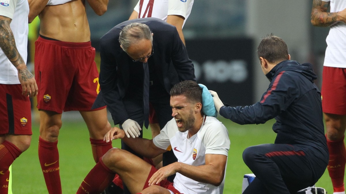 Slecht nieuws uit Italië voor bondscoach Dick Advocaat vanavond. Kevin Strootman heeft namelijk geblesseerd het veld verlaten tijdens het duel tussen zijn club AS Roma en AC Milan.De middenvelder kwam al in de 30ste minuut in botsing met een ploeggenoot. Strootman had daarna pijn aan zijn hoofd en moest worden vervangen. De ernst van de kwetsuur is nog niet duidelijk en dus is het de vraag of hij erbij kan zijn tijdens de komende interlands van Oranje.Zijn ploeg AS Roma versloeg AC Milan overigens wel in San Siro.