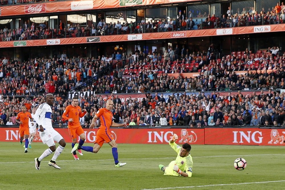 Het Nederlands elftal is op een 1-0 voorsprong gekomen in het duel met Luxemburg. Arjen Robben rondde een goede steekpass van Wesley Hoedt beheerst af.Het betekent voor Arjen Robben zijn 33e goal in het shirt van Oranje. Hij komt daarmee op gelijke hoogte met Neerlands beste voetballer allertijden, Johan Cruijff.