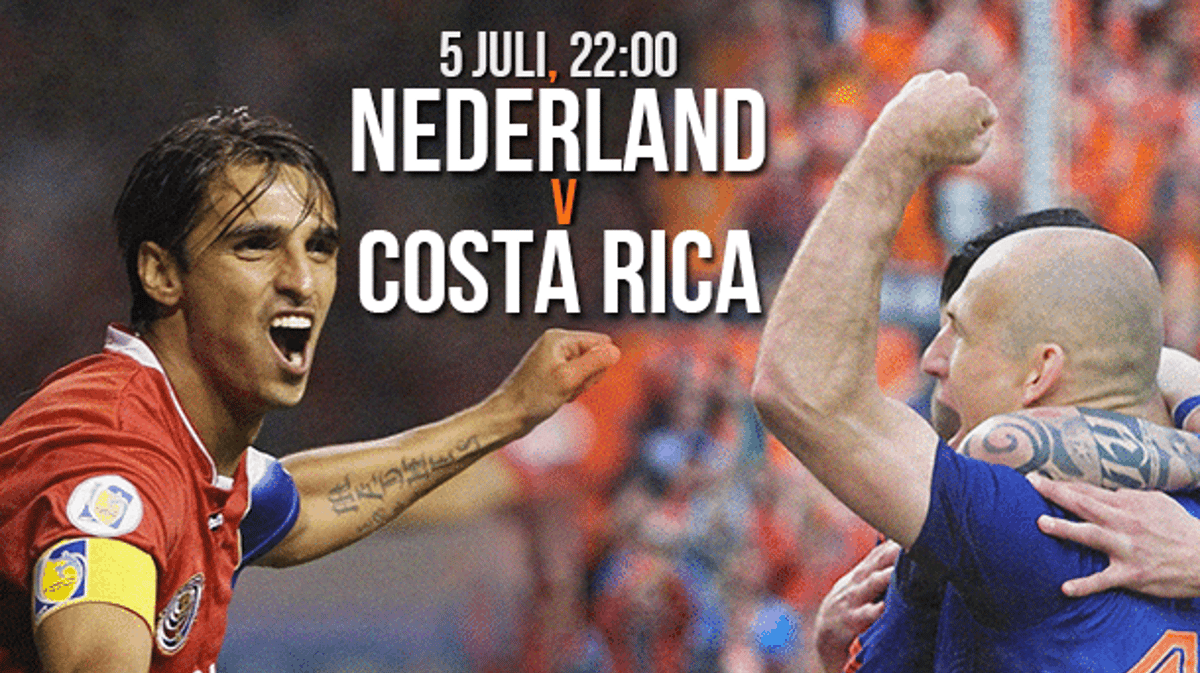 Vanavond om 22.00 uur: Nederland - Costa Rica in Salvador. Nederland en Costa Rica ontmoeten elkaar vanavond in de kwartfinale van het WK 2014 in Brazilië.Nederland - Costa Rica wordt gespeeld in het Fonte Nova stadion in Salvador, waar 50.000 toeschouwers zullen zitten. Het is in Salvador rond de 25 graden en er is een flinke kans op een bui. De omstandigheden zullen een stuk minder zwaar zijn dan afgelopen zondag in Fortaleza, waar de temperatuur opliep tot 39 graden in de zon.Nooit eerder speelden Nederland en Costa Rica tegen elkaar. Voor Costa Rica is het toernooi in Brazilië sowieso al een succes. Nooit reikten zij verder dan de tweede ronde, dat was tijdens het WK in 1990.Bondscoach Louis van Gaal zal in zijn opstelling tegen Costa Rica opnieuw een surprise uit de hoge hoed toveren. Memphis Depay start in de basis van Oranje en staat op de linksbackpositie. Het zal afhankelijk zijn van de kracht van Costa Rica hoe aanvallend hij opgesteld zal staan. Nederland kan met Depay dus nog makkelijker wisselen tussen 1-5-3-2 en 1-4-3-3. Alleskunner Dirk Kuyt zal tegen Costa Rica als rechtsback spelen. Daar stond hij ook al in de tweede helft tegen Mexico. Stefan de Vrij, Ron Vlaar en Bruno Martins Indi zijn de drie centrale verdedigers.Op het middenveld staat Daley Blind op de positie van de geblesseerde Nigel de Jong. Wijnaldum en Sneijder zullen hem moeten ondersteunen. Voorin staat opnieuw superduo Robin van Persie en Arjen Robben. Zie de complete opstelling van Oranje hier.Nederland zal vooral op moeten letten op Bryan Ruiz en Joel Campbell. De beide aanvallers zorgen voor de goals bij Costa Rica, dat het overigens wel moet doen zonder twee vaste verdedigers. Keeper Navas is net op tijd terug van een blessure.