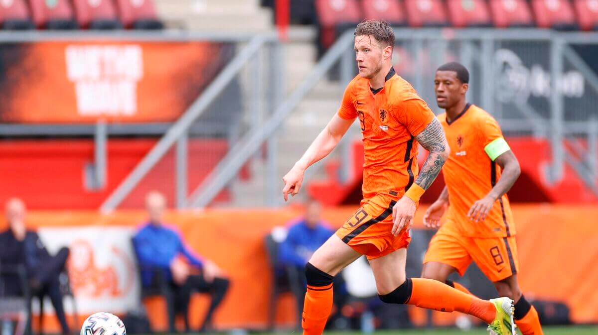 Voorin staat het nieuwe spitsenduo Memphis Depay en Wout Weghorst. De twee voelen een klik en moeten voor de goals bij Oranje gaan zorgen vanavond.