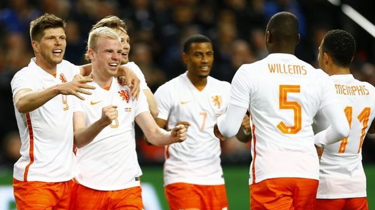 Guus Hiddink heeft zijn voorselectie bekendgemaakt voor de wedstrijden tegen de Verenigde Staten en Letland. De voorselectie bestaat uit 30 spelers, waarvan twee nieuwe namen. Steven Berghuis, Tjarron Chery en Davy Pröpper zijn de opvallendste namen.Verder zijn er geen verrassingen in de lijst, behalve dat Arjen Robben, Davy Klaassen en Stefan de Vrij niet meedoen vanwege blessures. Het Nederlands elftal start op 26 mei met de voorbereidingen op de oefenwedstrijd tegen de Verenigde Staten en het EK-kwalificatieduel tegen Letland.Hieronder de volledige voorselectie van het Nederlands elftal:Doel:Jasper Cillessen (Ajax), Kenneth Vermeer (Feyenoord), Tim Krul (Newcastle United), Jeroen Zoet (PSV)Verdediging:Gregory van der Wiel (Paris Saint Germain), Ron Vlaar (Aston Villa), Daley Blind (Manchester United), Daryl Janmaat (Newcastle United), Bruno Martins Indi (FC Porto) Jetro Willems (PSV), Jeffrey Bruma (PSV), Joel Veltman (Ajax), Sven van Beek (Feyenoord), Karim Rekik (PSV)Middenveld:Wesley Sneijder (Galatasary SK), Nigel de Jong (AC Milan), Georginio Wijnaldum (PSV), Jordy Clasie (Feyenoord), Leroy Fer (Queens Park Rangers), Davy Pröpper (Vitesse)Aanval:Robin van Persie (Manchester United), Klaas-Jan Huntelaar (Schalke 04), Memphis Depay (PSV), Luciano Narsingh (PSV), Luuk de Jong (PSV), Quincy Promes (Spartak Moskou), Bas Dost (VFL Wolfsburg), Jeremain Lens (Dynamo Kiev), Steven Berghuis (AZ), Tjaronn Chery (FC Groningen)