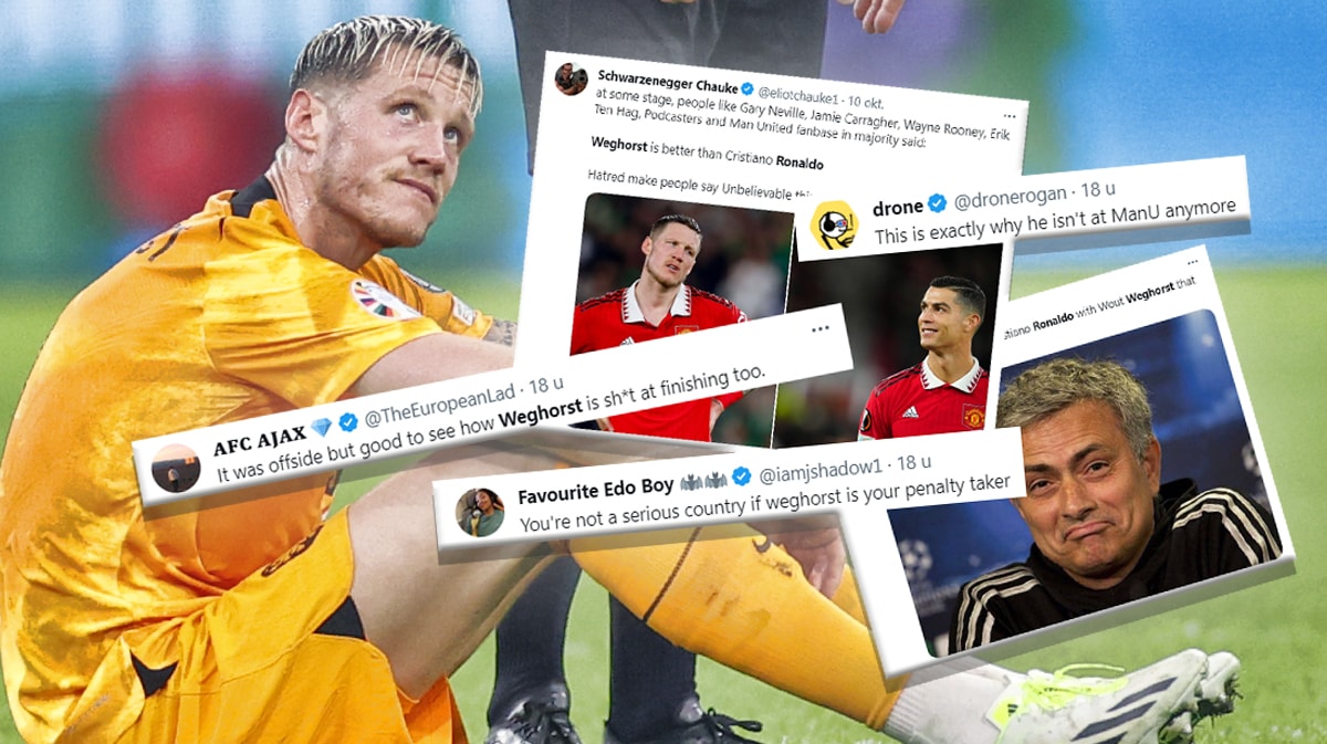 In het buitenland verwijst men maar wat graag naar de periode van Weghorst bij Manchester United. De boomlange aanvaller werd begin dit jaar op huurbasis door trainer Erik ten Hag naar de topclub gehaald als vervanger van de plotseling vertrokken Cristiano Ronaldo. Weghorst wist echter geen potten te breken bij United en dat krijgt hij nu - na de gemiste strafschop tegen Griekenland - nog maar eens te horen. Ook omdat Ronaldo gisteren wél vanaf de penaltystip wist te scoren. Dit deed hij in de wedstrijd van Portugal tegen Bosnië en Herzegovina (0-5 winst).