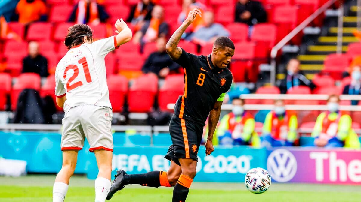 Met een snelle combinatie in de omschakeling sneed Oranje als een warme mes door de boter door de verdediging van Noord-Macedonië heen. Memphis kwam daarmee knap vrij aan de linkerkant en kon zijn medespeler uitkiezen. Memphis koos voor Wijnaldum en gaf een puntgave voorzet, die Wijnaldum alleen hoefde binnen te tikken.